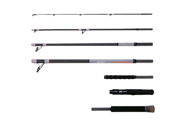 最長モデル「MX-10SW」に求めたのは、“長さ”がもたらす純粋な遠投性能と、足場の高さなど諸問題を解消するショア適性。 リスクを軽視せず、「1歩下がれる強さ」をスローガンに新設計したMXシリーズ共通径まで5pcのNEWブランクス(うち最強パワー)は、分割2pcグリップと合わせトータル7pc(50cm仕舞寸)となり、そこにオールダブルフットダブルラッピングセッティング、セクション端へのガイド配置など、「Dear Monster」としてブレ無い設計思想を全搭載。PE2号を基準に、1号程度から最大3号までを想定しました。 60gのジグが軽く100mを超えて飛んでいく……磯やサーフといった海域のみならず、大陸の大河本流等のこれまでアンタッチャブルだった淡水域含め、モバイルロッドの適応領域を大きく拡張します。 仕舞50cm、7pc並継構造という、モバイルロッド史上おそらく前例のないスペックは、オールインバックパックのコンパクト&アクティブなアプローチを可能にし、両手フリーによる遠泳・クライミング等を可能にして、これまで安全面から諦めていた“不可能”を過去の話に変えていくでしょう。 なお「MX-6SW/8SW/10SW」は、そのリアクリップ長を5cm違いでシステマチックに設計し、「3本で“海旅”をカバーする」をコンセプトに、レングス、パワーバランスを精査しました。入念な準備・手配が必要となるマグロ、GT、ヒラマサ(いわゆる“国内BIG-3” )および同等パワーを持つ超大型魚に関しては「GIGAS」(MGXシリーズ)を推奨いたしますが、以下ミドル級ターゲットまでを想定した肩肘張らない“海旅”では、ショア・オフショア問わず、「W」シリーズ3本の組み合わせによる臨機応変な対応を目指しています。 MX-10SW Length:10’”ft Power:ヘビー Action:レギュラーファースト Cast Lure capa:10~60g Line capa:~PE3号 Leader capa:~50lb Weight:285g 継数:7pc 仕舞寸法:50cm トップガイド:8mm リールフット以下:48cm