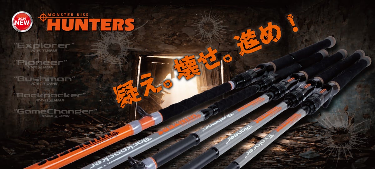 「ブッシュマン」は、ジャングルに生きる超人達の事。強者は細かい事など気にしない。その名を冠したこの竿は、辺境最奥地へのパスポートに等しい。岸から7フィート、ボートから6フィート、大体そんな2本があればなんとかなる……なった。先人達の経験を1本に集約。「PE5号くらいに1オンス前後のルアー」という経験則に、直球ど真ん中。全ダブルフットガイドは、数少ない必須条件。タフネス設計はビッグベイトのような変化球にも対応可能だ。「このロッドで対応できない“怪魚”なんているか?」……旅人が求めるべきはベストオブベストじゃない、ベターのベスト。「ブッシュマン」は細かい事など気にしない。 全長(ft.):5’9”-6’9”(2段階変長) パワー:エクストラヘビー アクション:レギュラーファースト ルアーウェイト:MAX 70g 適合ライン:MAX PE-6号 自重(g):176-214 継数(本):4-5 仕舞寸方(cm):49.5
