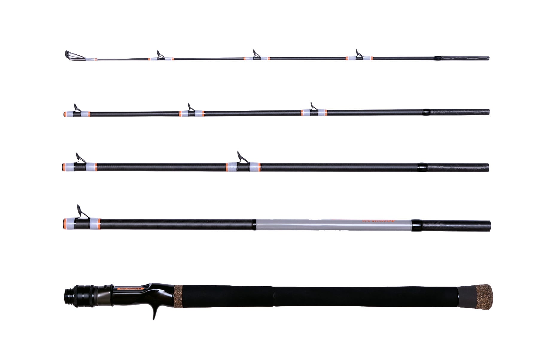 「パイオニア」“開拓者”は、文字通り新たな地平を切り拓く。ひと言で言えば“モンスターバーサタイル”、使うルアーを選ばず、パイクや各種ラテス(アカメ属)、タイメン(イトウ類)など、こと地に足つけた岸釣りと相性が良い。仕舞寸法50cm以下、全ダブルフットガイドという旅竿の必須条件をクリア、旧時代の“モバイルロッド”の着眼点「携行性」「耐久性」の先、新時代のトレンド「拡張性」に主眼に据えた。シンプルイズベストな5ピースで、コストパフォーマンスにも還元。その上で、モデル名末尾の「X」は……『DearMonster』およびオプションパーツ群に互換し、拡張性は無限大に広がる。