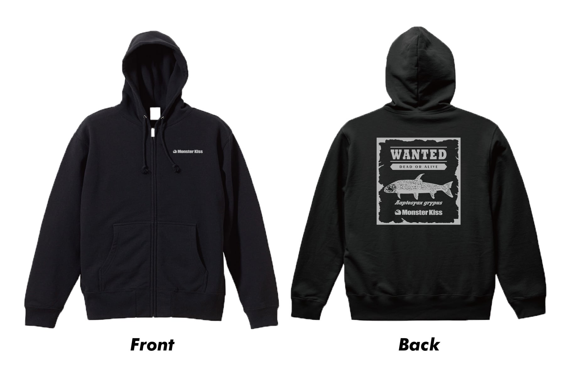 秋から春にかけて出番が増える中厚パーカー。表面にはブランドロゴを、裏面には馴染みのあるムベンガ、シーラカンス、そして知る人ぞ知るアジアの怪魚「サナック」、以上3種をデザイン。